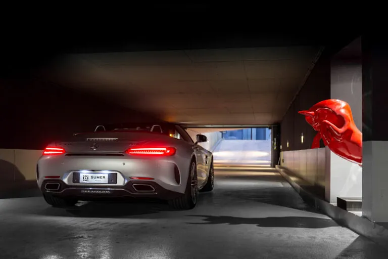 Sumer Vault offers secure and accessible vehicle storage in the heart of Paris, within 10 minutes of major landmarks. Clients benefit from 24/7 access, wide ramps, high security features including CCTV monitoring, and personal service options such as key management and automotive spa (car wash). Facilities include a lounge, meeting room, and custom options for vehicle care, with pricing available upon request. Each parking space can be equipped with a battery tender to provide charge maintenance.