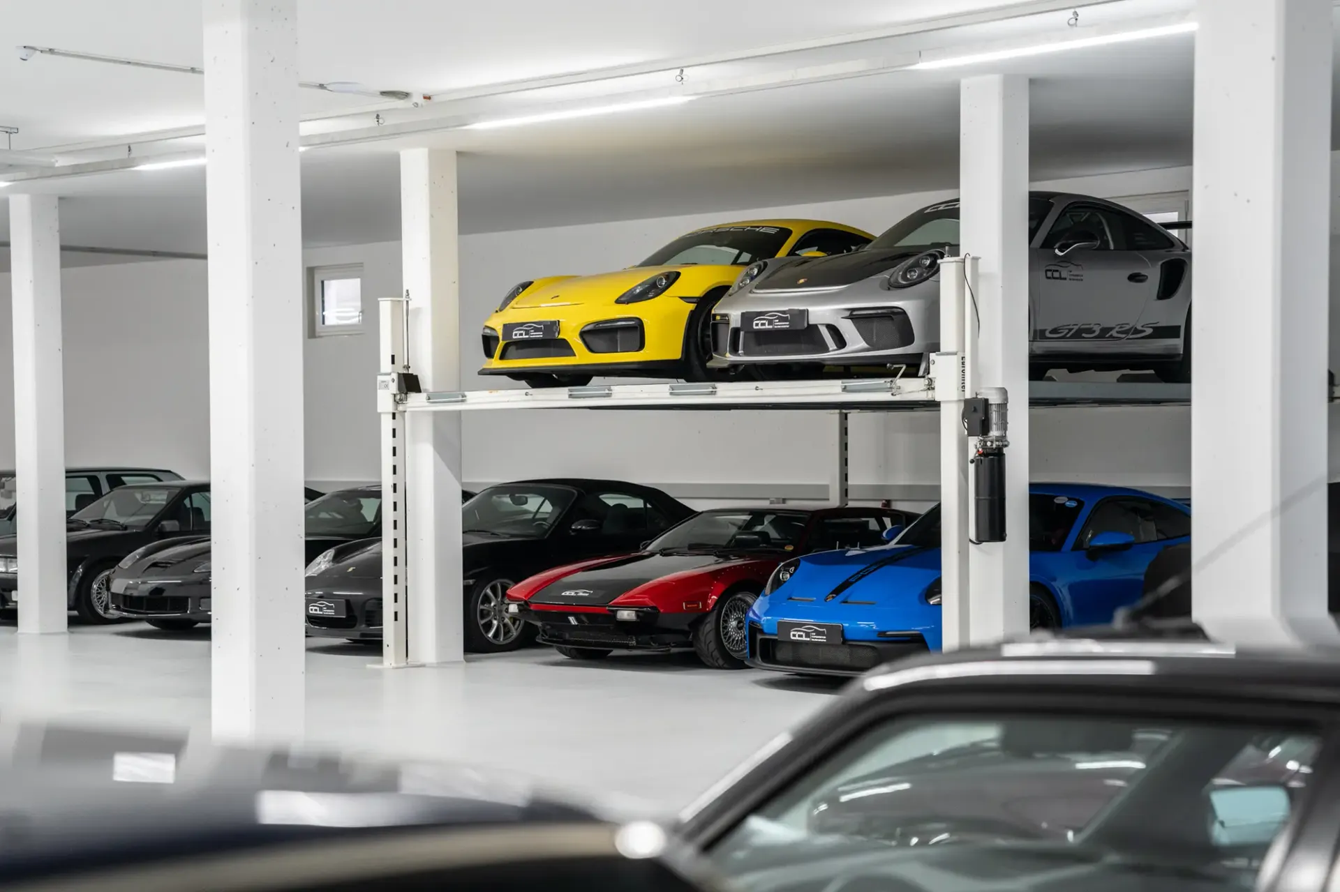 Protect your vehicle from corrosion and mould. The humidity and temperature in the storage room are permanently monitored and constantly regulated. (50% humidity, 15°C temperature). The parking space can be rented permanently or on a daily basis. (also during the workshop stay). You can collect your car at any time. We also offer a pick-up and delivery service. Our location in Gauting is optimally monitored and protected against theft and fire.