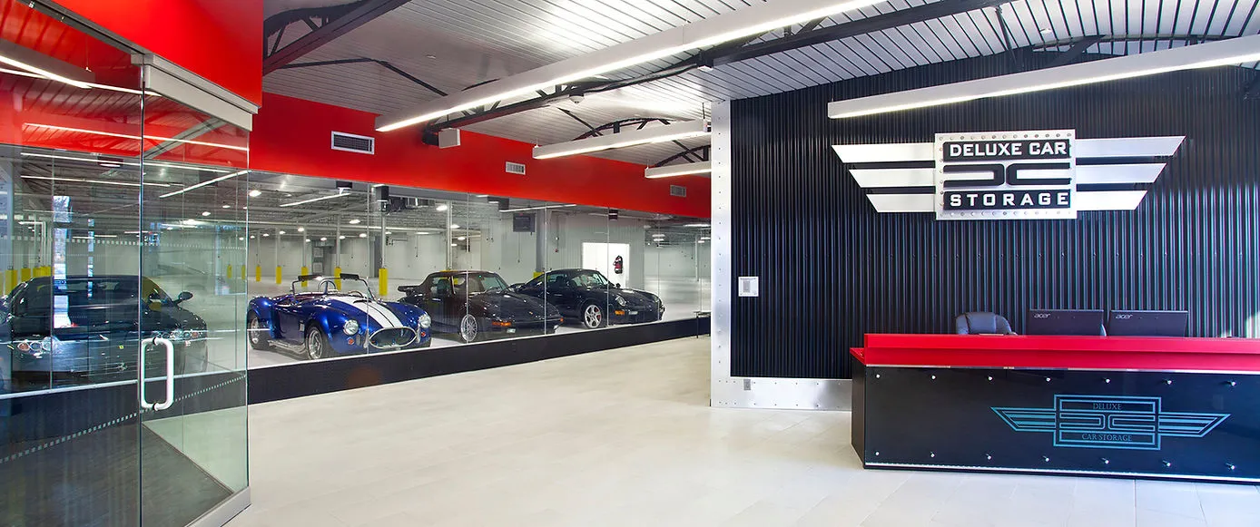 At New York's Deluxe Car Storage you can expect your car to be pampered, but there's more to it than that - we're a deluxe car club, too. Come relax in the lounge with other members, where our large screen TVs have a constant stream of auto racing, auctions and other prime events. Bring friends by to view your - and your friends' - cars, behind beautifully lit floor-to-ceiling glass. Meet other members and organize a spontaneous rally to the Hamptons. At Deluxe Car Storage, you're among friends who share your passion.