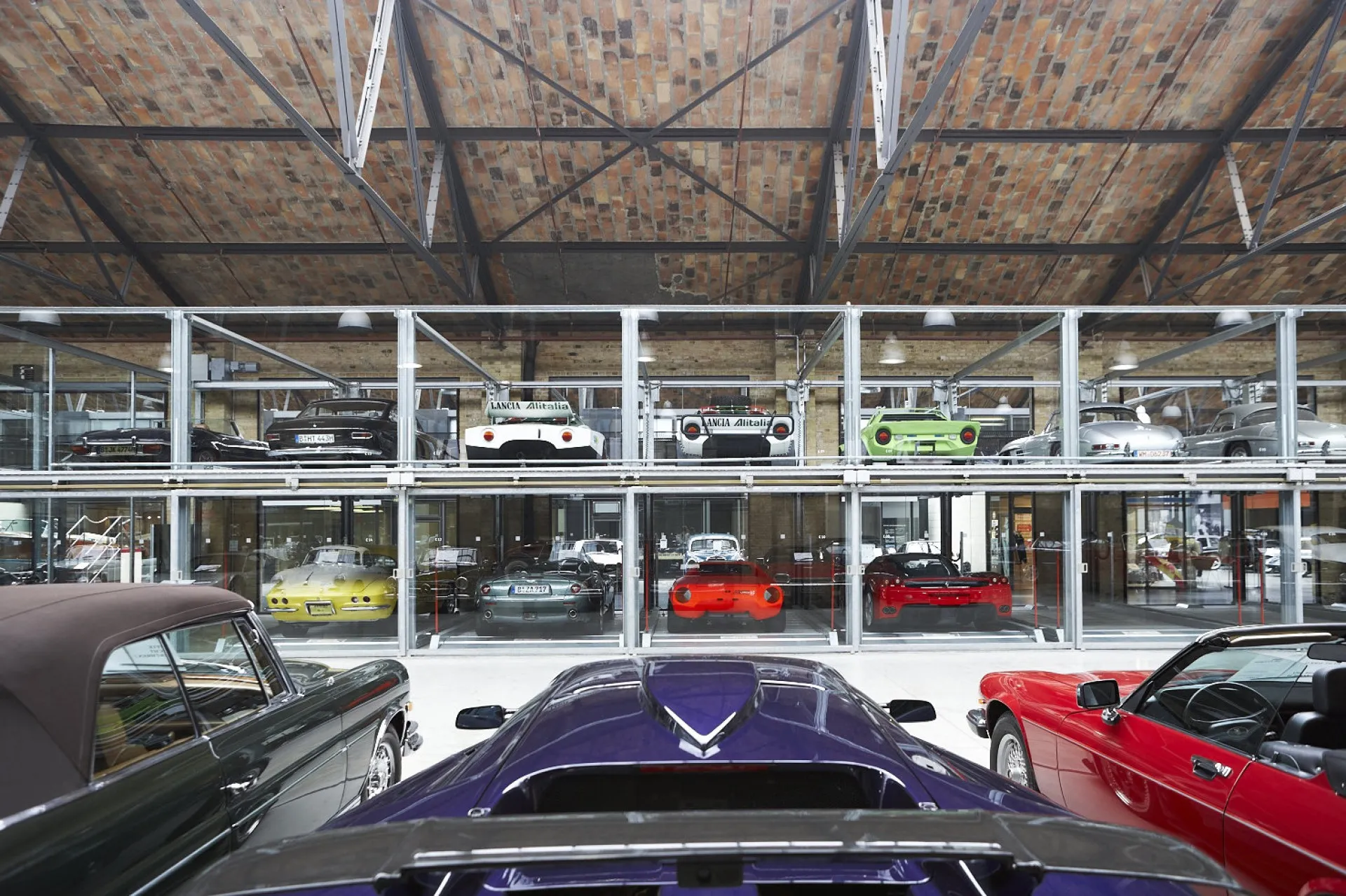 Classic Remise Berlin, opened in 2003 in a historic 1899 tram depot, is the world's first classic car center of its kind. The facility houses garages, services, dealers, and restaurants in this landmark building. We offer 88 glass boxes for classic car storage, providing excellent safety and weather protection while creating a living museum experience. Only car owners access their transparent glass boxes, but visitors can view the collection, making it a unique automotive destination combining historic architecture with vintage vehicles.